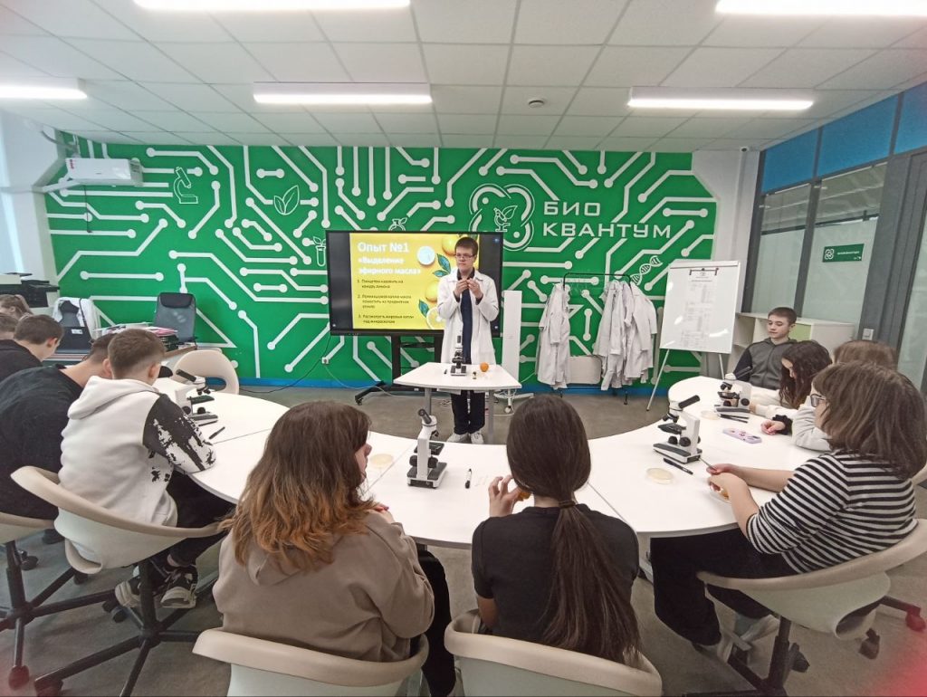 ⚗🔬В биоквантуме они изучали микромир, работали с микроскопами и готовили удивительные микропрепараты для своих исследований.