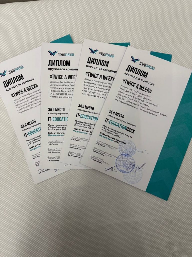 👥Обучающиеся хайтека детского технопарка «Кванториум»: Горбачев Валерий, Эвриков Данил и Романов Александр, под руководством наставника Бондаренко Павла Сергеевича принимают участие в хакатоне.